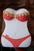 Na bikini zrobiłam biszkopt z 10 jajek, upiekłam w dużej prostokątnej blaszce i dwóch salaterkach(na piersi) prostokątny biszkopt przekroiłam na połowe w środek dałam mase.Najlepiej skorzystaj z przepisu na tort striptizer Dorotaxx, pozdrawiam