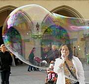 W Łodzi w Eksperymentatorium można zamknąć własne dziecko w takiej potężnej mydlanej bańce. Niestety z łatwością się wydostają...