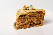 ...zrobiłam tort mięsny z beszamelem, serem i warzywami na...