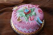 A z jakiego przepisu robiłas dekorację na ten pierwszy okrągły różowy tort?