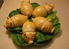 Na stole pojawiły siętak na jeden "hapsik" skrzydełka na miodzie, kotleciki drobiowe, żaglówki z jajek, swinki drożdżowe i sałatka z łososia, która miała być pralinkami z łososia:-)), ale zabrakło juz czasu i improwizowałam.
