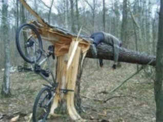 rower w porownaniu do drzewa jest w dobrym stanie, wyglada na to ,ze usnal za kierownica ;)