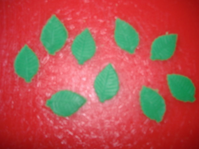 Ja do zrobienia listków wykorzystuję takie coś po listkach czekoladowych .Wypełniam marcepanem a następnie delikatnie wyjmuję .Żeby nie były proste lekko wyginam i kładę na brzegu talerza do wyschnięcia .