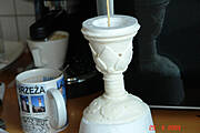 Nie wiem czy nie za pozno, ale ja robilam kielich z masy cukrowej, metoda oblepienia styropianowego dzwonka i podstawę kielicha -nakladając kółka na siebie( ale wyszedł za ciezki), wiec drugi ten co jest na torcie robilam podstawę na odwroconej miseczce.Poczatkowo podtrzymywala to wykalaczka, ale po 2 dniach juz ja usunelam i kielich stał.