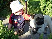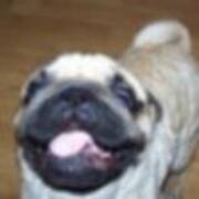 , je za 10-ciu mógłby konia z kopytami zjeść, ale za dużo nie ,moze bo za bardzo przytyje, po za tym biedaczek ma teraz ropień na rogówce i chore oczko i alergie musi jeść specjalną karmę, no i jest ogolony ale jak odrośnie mu futerko to dopiero będzie piękny!!!! Zresztą dla mnie już jest piękny. A tak po za tym jest przkochany, ciągle trzeba go tulić i ciągle się z nim całować i głskać i drapać i skakać i zabawiać bo mopsy jak to mopsy szybko się nudzą. Pozdrawiam!