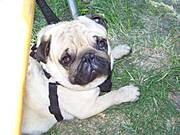 Smyrki za cudnymi uchami ;) - ostatnie, roześmiane zdjęcie mopsiej mordeczki... miodek :)