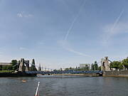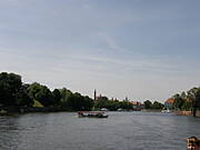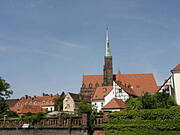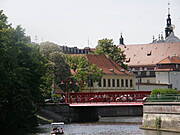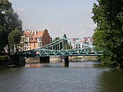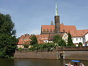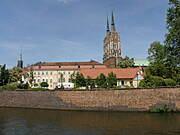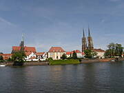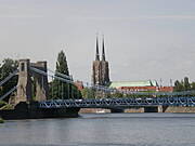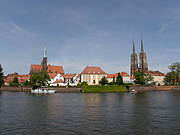 Ostrów Tumski. W tle katedra. Na Odrze.Mosta Grunwaldzki