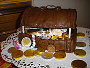 Torcik kuferek ze złotem dla mojego synka na dzień dziecka