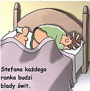 - Ty chu** , pijaku pieprzony, nie dosyć, że przychodzisz nad ranem do domu pijany, to jeszcze cala kołdra we krwi! A już nie wiem do cholery, na co te plastry na tym lustrze poprzyklejałeś!