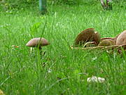 A takie kozaczki rosną pod moimi brzózkami na działce .Urosło jeszcze coś ( fot.3 i 6 ), ale nie wiem czy to kania, czy sromotnik, więc sobie rośnie dalej. Bo ja to grzybiarz nie jestem