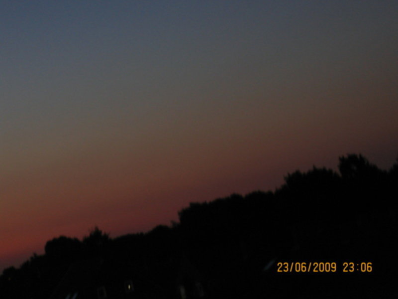 Mamy teraz najkrótsze noce.Tak wygląda niebo nad moim domem ok. godz. 23 - od strony wschodniej i zachodniej.Mogłoby tak być zawsze !A jak jest u Was o tym czasie ? ( Skandynawia, południe - i wszędzie gdzie jestescie )Pozdrawiam ciepło !