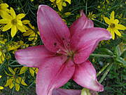 Dziś pojechałam po raz pierwszy od kilku dni na dłuższy rekonesans i szacowanie strat. Woda opadła, ale miejscami grzęźnie się po kostki .Rośliny otrząsnęły się z błota, deszcze troszkę je obmyły.Mimo,że tak ucierpiały, całe moje hostowisko , skalniak i rabaty pokryły sie świeżym kwieciem.