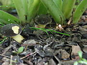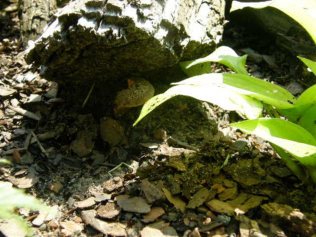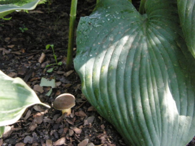 Ale najładniejsze egzemplarze pochodzą z ...naszego ogrodu. Pod hostami, gdzie ziemia wysciółkowana jest sosnową kora pojawiły się takie egzemplarzyki.Czyż nie śliczne?