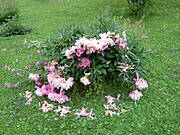 Moje piekne kwiaty leza zmasakrowane po nocnej burzy, nawet zdjec nie bylo jak zrobic, bo zmoklam jak kura probujac rozlozyc parasole na pomoc, a potem je gonilam jak glupia, zeby nie uszkodzily samochodu. Caly prawie dzien lalo jak z cebra,kwiaty , krzaki , piwonie, leza na ziemi, no nie wiem, mam sie nie dac, albo tylko trawe uprawiac:((((