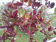 Wątek odnawiam, bo mam mały problem. Na balkonie wysialem roślinę pnącze jednoroczne które wyrasta do 4m, rośnie i żyje do chwili obecnej pięknie sie rozrosło, zmienilo barwę z początkowo soczystej zieleni po ciemną, były jeszcze do niedawna piękne kwiaty, kielichy ciemnofioletowe (foto z daniem) i przeszło w piękny kolor bordo. Fotki zrobilem dwa dni temu. Przymrozki jakie byly nie zaszkodzily tej roslinie, ... a moj problem to co to za roślinka . Po prostu gdzieś zagubiłem torebke po nasionach i nie znam nazwy.