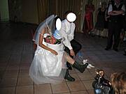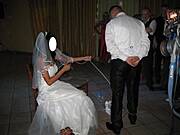 goście weselni stanowili niezły doping gdy Młody miał wypić tę nieszczęsna szklaneczkę wódki , czy wtedy gdy Młoda miała prowadzić go na łańcuchu:)) śmiechu było sporo :)) dzieci najbardziej były zadowolone gdy Młoda zmieniła swoje białe pantofelki na buciki od tesciowej :)) wklejam kilka zdjęć - niestety bez twarzy co by Młodzi się nie obrazili, że rozpowszechniam ich wizerunek :) ale myślę że zobrazuja Wam jak to mniej więcej wyglądało:) dziękuję i pozdrawiam wszystkich:)