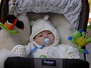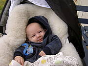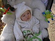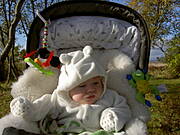 Tineczko, ten mały szkrab jest coraz wiekszy i sliczniejszy! Spiacy, wyglada jak aniolek, a w wozku, w tym ubranku z uszkami, no to juz po prostu do schrupania! Widac, ze jest szczesliwy! Niech rosnie zdrowy!! Wycaluj Go przy najblizszej okazji!
