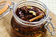 Prosze: 100 ml oliwy virgin z oliwek suszone pomidory 6 sztuk anyzu gwiazdkowego 2 male laski cynamonu 1 zabek czosnku pol lyzeczki szczypulek szafranu 2 lyzki balsamico kawalek papryki chili