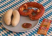 oo wlasnie biala kielbasa - ale uwaga ona jest zupelnie inna od polskiej bialej, wyrobiona z cieleciny z duza iloscia pietruszki w srodku, bardzo lagodna w smaku stad i slodka musztarda do niej. Uwaga! Skorki sie nie je lecz kielbaske z niej wysysa (zuzuzlt) albo kielbaske nacina sie wzdluz i sciaga skorke. Niektorzy jedza ze skorka ale to juz niemal SAKRILEG. Nie wiem czy cos podobnego mozna kupic w Polsce.