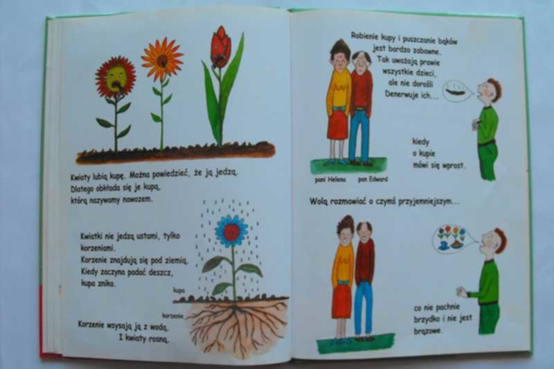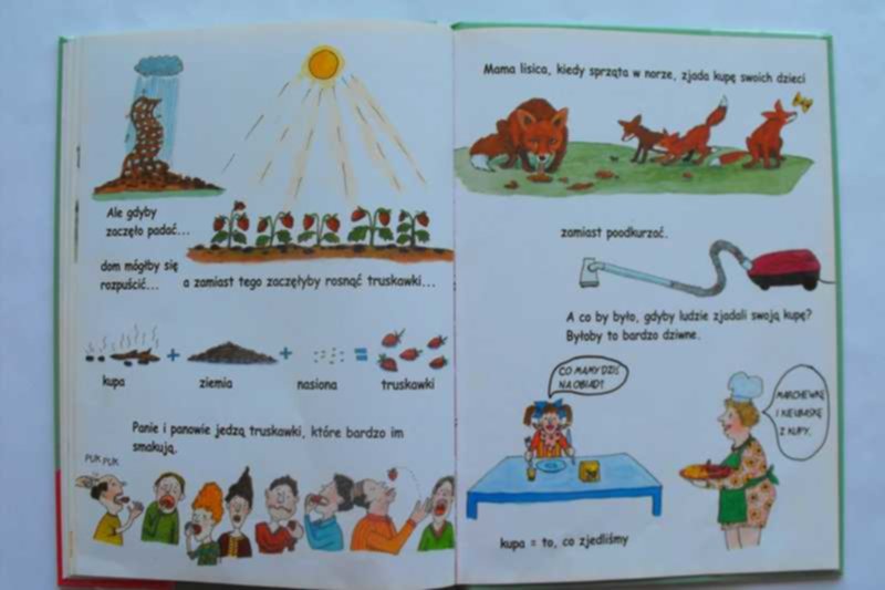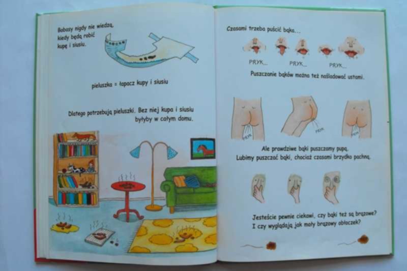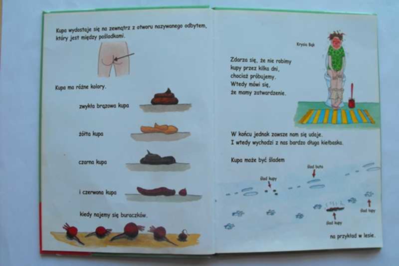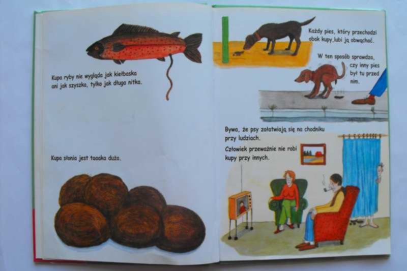 Czy to książka jest potrzebna dzieciom, by poznawały świat? Od kiedy zaczęły siadać na nocniku, nie jest to potrzebne w wiadomej sprawie. Sprawy biocyrkulacji są za trudne dla dziecka, by były przyswojone z takiej książeczki.