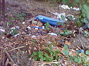 Ale to jest regularne wyspisko śmieci :( Skąd się tam wzięła ta plastikowa łódka? Popękane donice, połamany monitor... ???