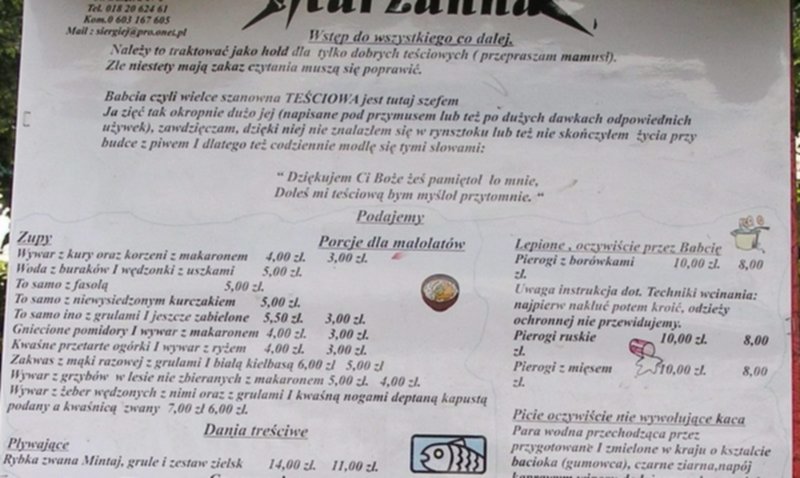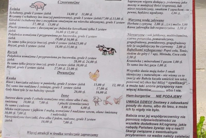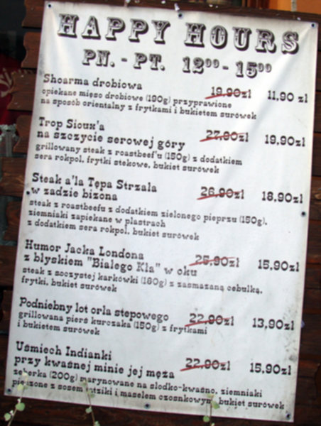 Ta pierwsza karta menu (pierwszy post) pochodzi właśnie z tej knajpki
