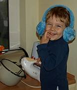 Tak sie naczytałam o tych waszych wypiekach i mi sie głupio zrobilo ze Wy wszyscy tak pieczecie, postanowilam poszukac jakiegos ciasta i zrobic. Zaczelam od ciasta bez pieczenia haha poszlam na latwizne ale to tez ciasto :) Znalazlam cos ladnego i latwego http://wielkiezarcie.com/recipe46291.html Poniewaz nigdy raczej nie robilam ciast to wyszlo kilka problemow. Np przepisie nalezalo namoczyc biszkopty w kawie ja nie chcialam wiec je ulozylam a potem gdy wylalam polowe kolorowej masy to biszkopty zaczely unosic sie do gory a ja musialam je podtzrymywac moimi paluszkami haha W kazdym badz razie ciasto wyszlo, nie ktore biszkopty zamiast na dole byly na gorze ale ciasto zniknelo w niecala dobe :) A oto moj mały pomocnik przy robieniu ciasta Zawsze wkłada słuchawki, gdy cos jest głosniejszego od niego ;)
