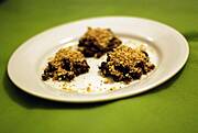 dziś nie mam w domu żadnego tłuszczu do pieczenia, więc zrobiłam takie zdrowe ciasteczka (szyszki) z otrębów, orzechów i gorzkiej czekolady