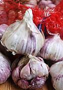 Najbardziej lubie czosnek francuski z Provance, taki pieknie fioletowy. Kupilam na rozsade i choduje teraz u mnie w ogrodzie. Jak przezyje zime, bede miala pyszny wlasny czosnek gourmet. Nazwa po lacinie : Aglio viola francese uwaga, zdjecie z netu.