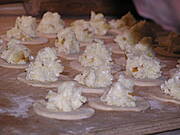 120 ruskich z dodatkiem serka typu Turek oraz prażonej cebuli - pyszszne odsmażane na maśle albo na czymś w rodzaju Flory czy Masmiksa, właściwie na oleju też niezłe 70 z mięsem i włoszczyzną (radosna twórczość po ugotowaniu rosołu) - okraszone zezłoconą na maśle i oliwie cebulą