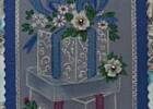Jedna kartka zajmuje srednio 3-4 godziny.Niektore robilam kilka dni.Mam dobry wzrok ale jak musze wydziurkowac taka mocno azurowa to moge to tylko dziennym swietle zrobic.Te wzory sa dosc gleboko wytloczone,jak sie naciska za mocno to sie pergamin marszczy