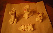 Dekoracje rewelacyjne. Pieski podobają mi się najbardziej, są słodziutkie i nie dla tego, że zrobione z masy cukrowej :))