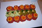 Od razu zrobiłem się głodny. Śliczne !! A miałaś opisać jak zrobić te kwiatki :-( Próbowałem z pora zrobić to biało-żółte ale wychodziło jakby je walec przejechał :-(