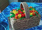 aggusia35 ależ dlaczego nie miałabyś pomęczyć. Uchwyt do koszyka jest zrobiony z białej masy cukrowej Dorotaxx, to własnie dzięki jej masom do których podałam wyżej linki mogłam się wprawiać w zdobieniu tortów i dalej się wprawiam i za udostępnienie tych przepisów należą się jej wielkie podziękowania. Wracając do tematu to z masy wycięłam pasek odpowiedniej długości i szerokości, a zrobiłam to jakiś tydzień wcześniej, wytłoczyłam kilka wzorków wyszorowaną i wyparzoną spinką do włosów mojej córki, nałożyłam pasek na garnek odpowiedniej średnicy, który pasował wymiarem do koncepcji koszyka i tak sobie sechł. Ze świeżej masy nie dało by rady gdyż nie utrzymała by kształtu.