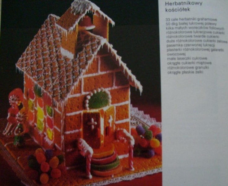 mam książkę z instrukcjami wykonania domku,sklepu i kościółka z herbatników grahamowych są śliczne,zdjęcie nie oddaje urody ,jeśli cię zainteresują postaram się zrobić więcej i lepiej pozdrawiam