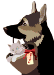 Wośnica siedzi ze swoim psem na wozie. Uderza konia batem a koń sie odwraca i mówi