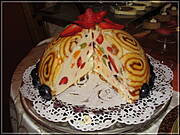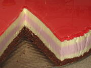 No to sie chwale :) Maz chcial ciasto: ciasto, krem, galaretka, krem, ciasto i czekolada. Wiec upiekłam biszkopt (bo mi najlepiej wychodzi), zrobilam krem jak do tortu, w srodek galaretke, na gore polewe czekoladowa posypana cukiereczkami :) I nawet mi wyszlo bardzo dobre!