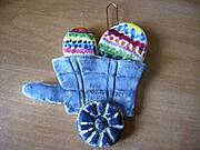 Z tyłu tylko troszke widac zajączka zrobionego z wydmuszek i bazi(resztę , czyli łapki, ogon, itp. zrobiłam z filcu), ale mój synuś obklejał wydmuszki baziami i tez super wyszły. Bazie(z gałązkami) muszą byc wcześniej zebrane i włożone na sucho do wazonu, jak wyschną obrywamy je i do dzieła(wysuszone kuleczki mozna schowac na następny rok).
