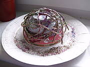 Ponizej gotowy koszyczek i jeszcze jeden w trakcie schniecia (caly od kleju posypany brokatem)