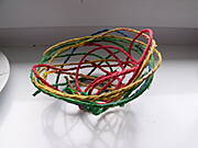 Ja mam w domu 4-latka i wlasnie kombinuje co z nim robic na poczet swiat. Na razie sciagnelam mu z chomika troche kolorowanek tematycznie wielkanocnych. Poza tym robilismy koszyczki wielkanocne. Proste. Wystarczy sznurek, farba i klej (u nas nazywa sie PVA glue czyli klej ktory klei niemal wszystko, od papieru przez szklo i plastik. Ja mam atestowany dla dzieci.). Farba+klej mieszasz pol na pol i maczasz w tym sznurek. Zbierasz nadmiar farby i sznurek owijasz wokol miseczki polozonej go gory nogami. Na drugi dzien ''dzielo'' jest suche i mozna delikatnie zdjac. Teraz bedziemy robic zajaczki wielkanocne, ktore byc moze zamieszkaja w tych koszyczkach. Ponizej gotowy koszyczek i jeszcze jeden w trakcie schniecia (caly od kleju posypany brokatem).