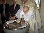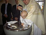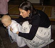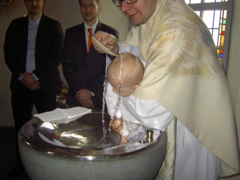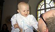 Aggusiu, trzy razy mial Alvinek lana wode na glowe, myslalam, ze bedzie sie zloscil :) Tato Alvinka mial wielka treme i rozstawil nogi szeroko....hihi