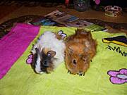 Przy okazji pochwalę się co mi ktoś zostawił dzisiaj rano pod drzwiami, w pudełku po butach. zadzwonił do drzwi i uciekł, w środku była karteczka. To Zosia i Gosia,mają 2 tygodnie, to dla Ciebie:) Ucieszyłam się bardzo, mama mniej, a Piotrek piszczał z uciechy jak je zobaczył, nawet pies się ucieszył i merdał ogonem jak szalony.Zostałam właścicielką 2 pięknych rozetek-świnek morskich.