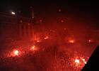 Jak widac na zdjeciach, atmosfera goraca. Podobno jedna fontanne na Starym niezle uszkodzono. Ponadto jakis trefnis wdrapal sie na pregierz, z ktorego spadl, urywajac "bicz", czy jak toto zwal. Znajoma opowiadala, ze stala na Rynku w takim scisku, ze gdyby zemdlala, to jeszcze przez godzine by stala...