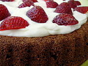 biszkopt kakaowy ze śmietaną i z truskawkami. Niebo w gębie