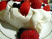 Biszkopt z waniliowa bita smietanka & malinki z borowkami