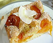 Tarta (ciasto bez cukru) z brzoskwiniami i morelami z własnego przerobu.