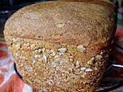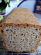 Razowiec, od Tatter. Tylko ja nie trzymam się przepisu ściśle. Wody wcale nie dawałam, tylko zastąpiłam maślanką. Mąki pszennej daję mniej, a żytniej (razowej i chlebowej) więcej. Jest bardzo pyszny i nie wymaga tych całych ceregieli z przekładaniem do koszyka, z koszyka itd. Ciasto jest bardzo luźne, więc spokojnie wyrasta sobie w keksówce.
