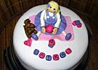 Dziękuję!!! Z literkami to trzeba dojść troszkę do wprawy...Ja cieniutko rozwałkowuję masę na ok 1-1,5 mm i zostawiam ją na chwilkę, by odrobinę przeschła- wtedy wycinam i strzelam w stół, by literki wypadły. Jest jeszcze drugi sposób: "przyklejam" masę na posmarowany plantą lub kasią blat a wtedy literki się odciskają i zostają na blacie. usuwam to co naokoło literek i gotowe.. Mam nadzieję, że napisałam zrozumiale. A różyczki, robię ręcznie z kuleczek - rozpłaszczam je przez folię i płatek po płatku formuję . - Mozolna praca!!! Pozdrawiam.
