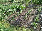 to posadzone na miejsce wiosną, przezimowały w doniczkach (wraz z doniczkami włożone dodatkowo do ziemi w namiocie), te z lewej sa drugoroczne, z nich (po prawej 3 rzędy) właśnie są sadzonki,