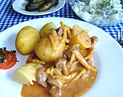 gulasz z ziemniakami i ogorkiem kiszonym